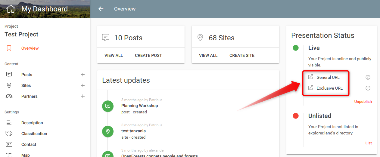 This URL is ideal when sharing Projects with Partners and Stakeholders.