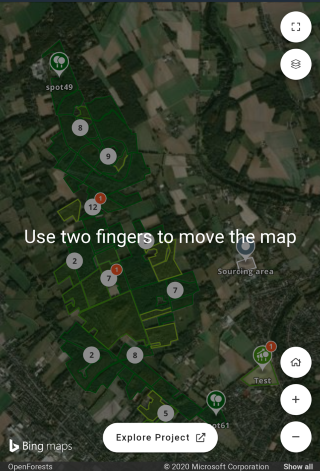 For embedments with a width smaller than 600 px - which is the case for many mobile devices - the popups are not available. The user can still navigate the map and explore the project area, but for additional information, the user has to switch to explorer.land using the "Explore Project" button.