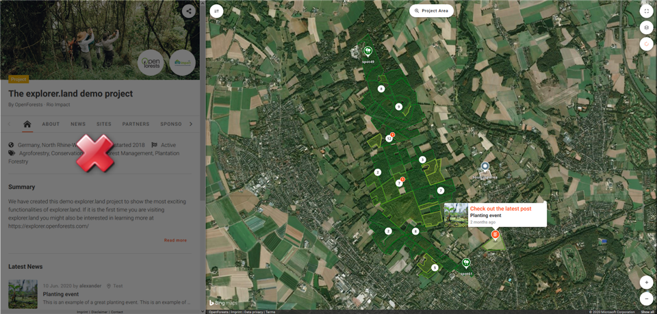Usually, organizations have their own web pages where projects are presented. And typically, one missing element are maps. The explorer.land platform allows the embedding of the Project map in any other web page context, adding all the power of the interactive map interface to other project information.