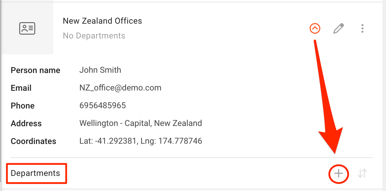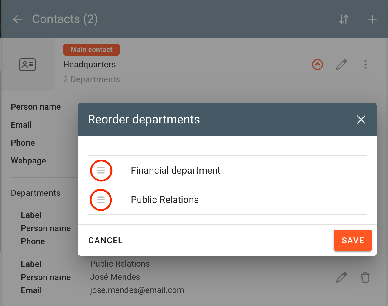 As with the contacts, if you have more than one department you can also change the order in which they appear. Start by clicking on the "arrows" icon.