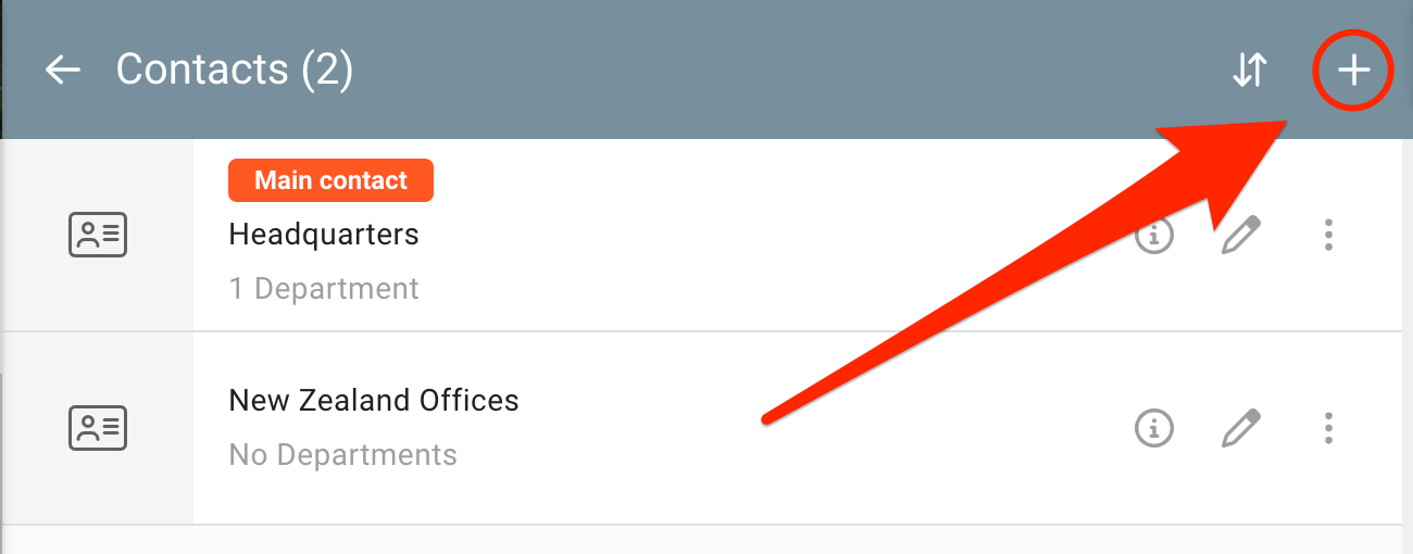 It is possible to add more than one contact to a Project. To create a new contact, click on the plus icon on the top right of your Contact Management Page.