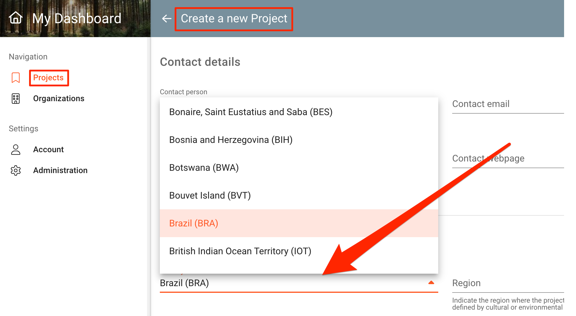 The Project center is a point which indicates what the formal center of the Project area is. Amongst others, it is used to show the Project's position on a global map, e.g. on the Organization's page.
