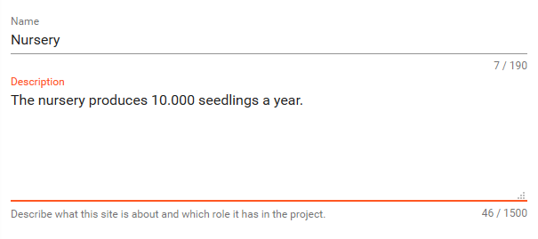 Start by naming the new Site and describing it, including its role for the project.